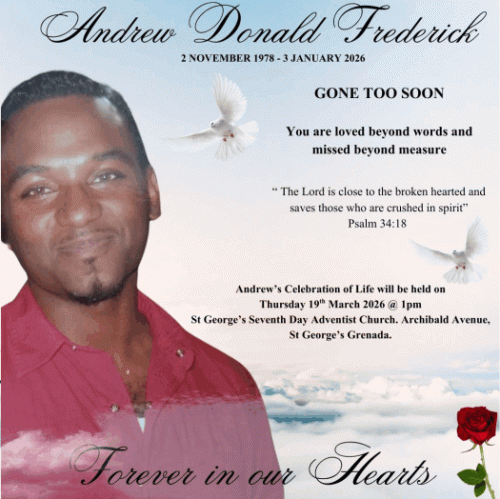 Andrew Donald Frederick also known as “Drew” of: Lance Aux Epine, St. George